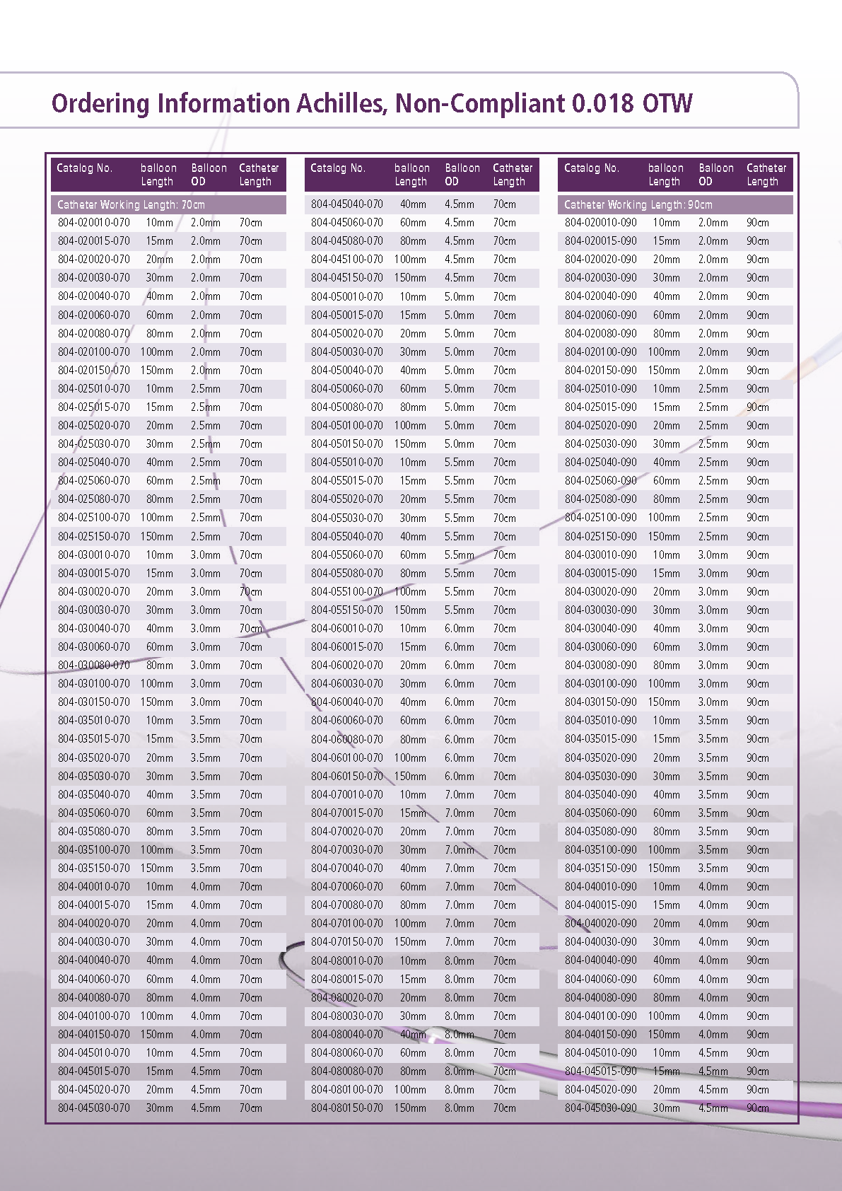 Achilles™ NC — это нерастяжимый (non-compliant) over-the-wire баллонный катетер диаметром 0.018″, разработанный для предельно точной дилатации периферических и ниже-коленных сосудов. Номинальное рабочее давление — 12 атм, расчётное разрывное давление достигает 22 атм для баллонов 3–4 мм и 20 атм для 4,5–6 мм; средние разрывные давления составляют 30 атм и 28 атм соответственно. Совместим с интродьюсерами 4 F (3–4 мм), 5 F (4,5–6 мм) и 6 F (7 мм), обеспечивая превосходную продвигаемость, устойчивость к перегибам и гидрофильное покрытие для легкого прохождения через узкие, кальцифицорованные и диффузные стенозы, гарантируя контролируемую дилатацию при минимальной травматизации сосудистой стенки.